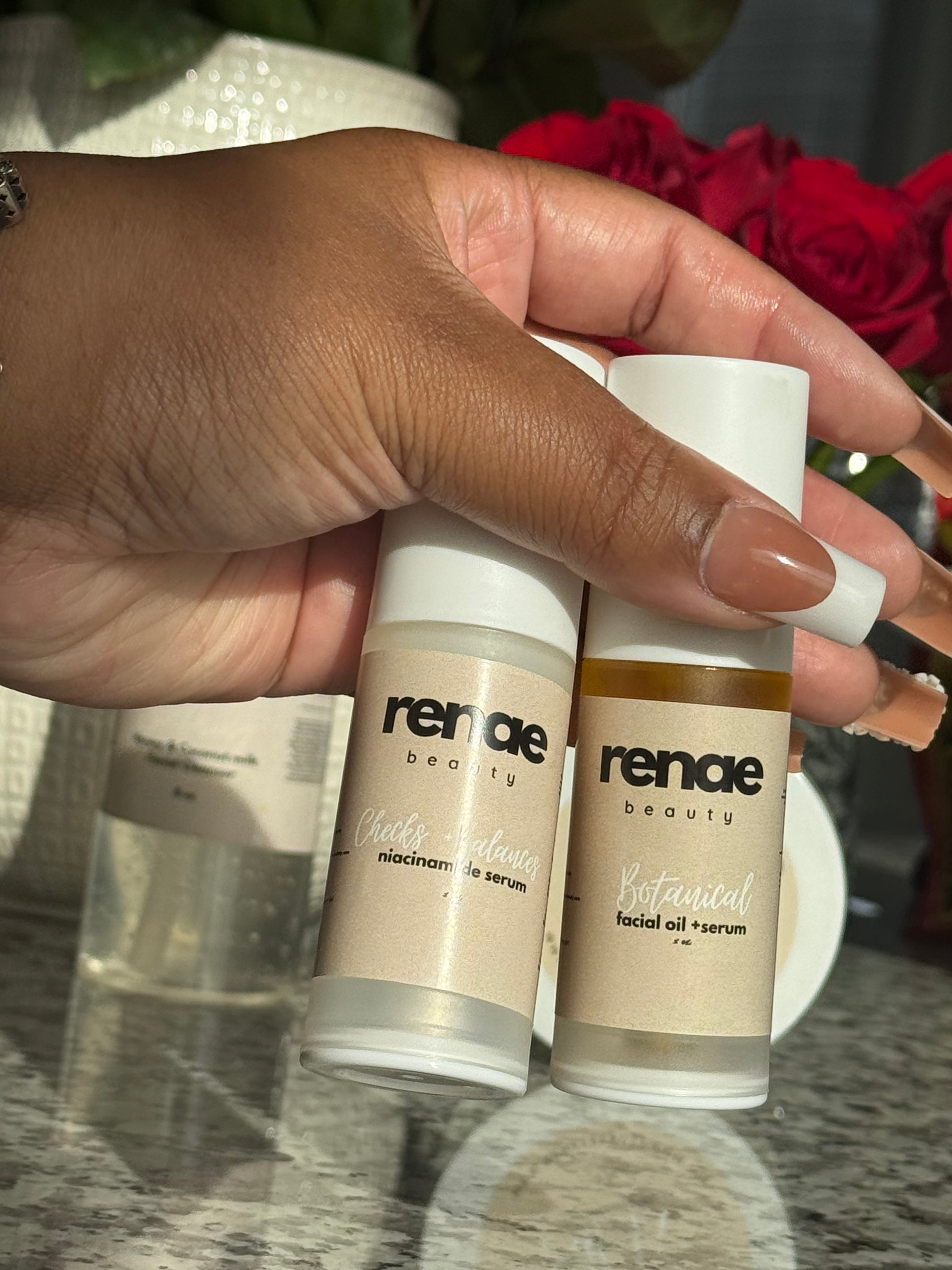 Elevate your skincare ritual with the Radiance + Balance Duo, a synergistic pairing of our best-selling Checks + Balances Serum and Nourishing Radiance Facial Oil. Thoughtfully curated to deliver maximum hydration, nourishment, and glow, this duo targets dryness, dullness, and imbalance—all in two powerful steps.
